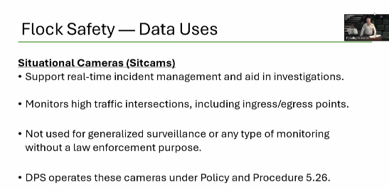 Furthermore, Fox states that all data collected using Flock Safety cameras is protected, as DPS has full control over this data.