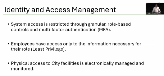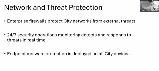These are meant to provide protections for city data from both inside facilities and from potential attackers on the outside.