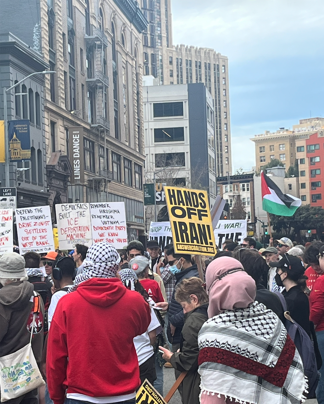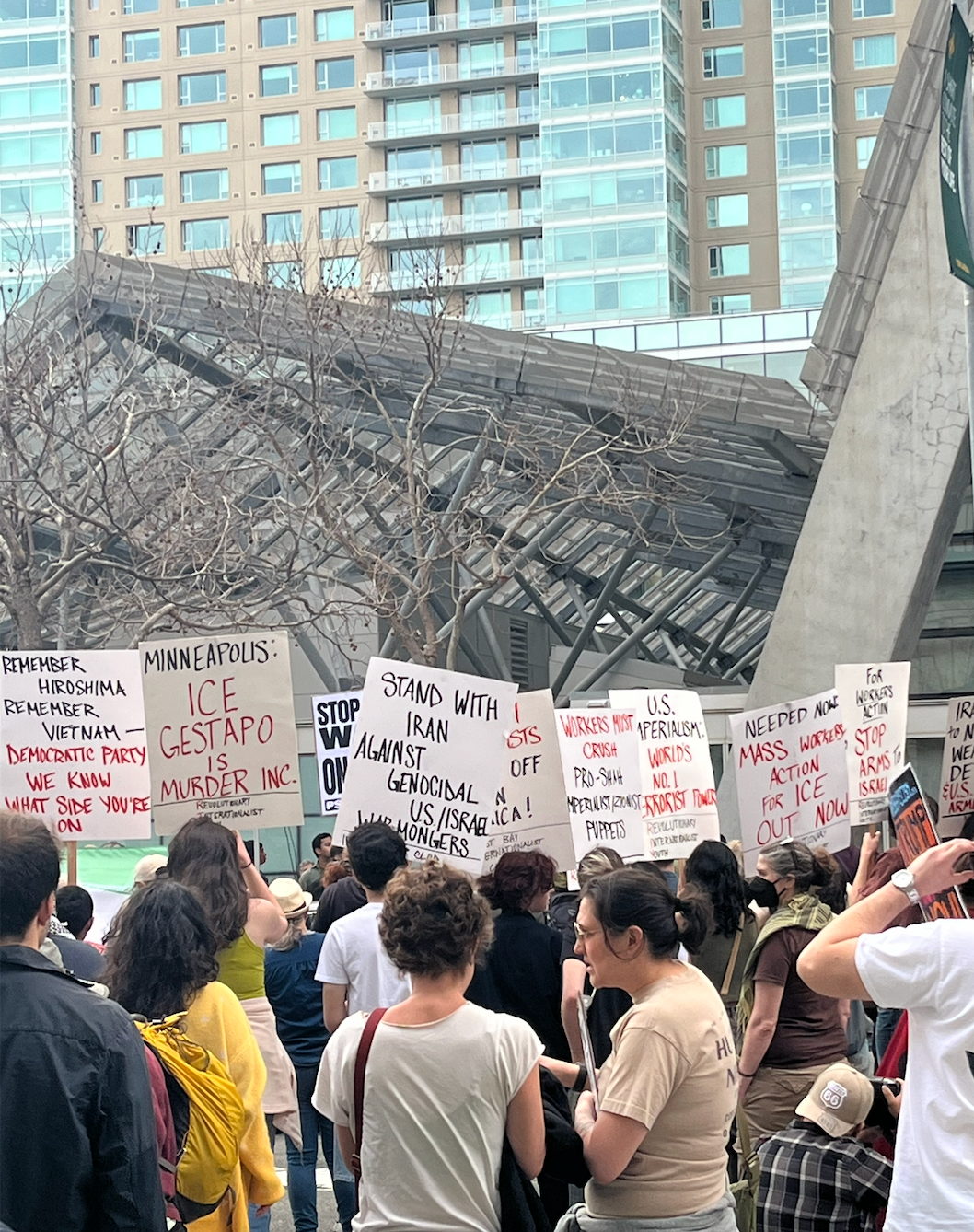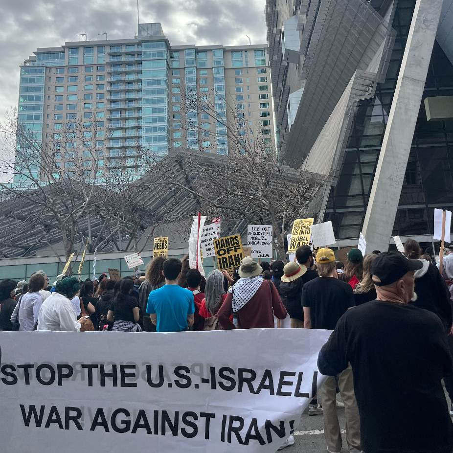 Despite being organized on short notice as an emergency action, the 'No War on Iran' protest still drew hundreds of Bay Area residents.
