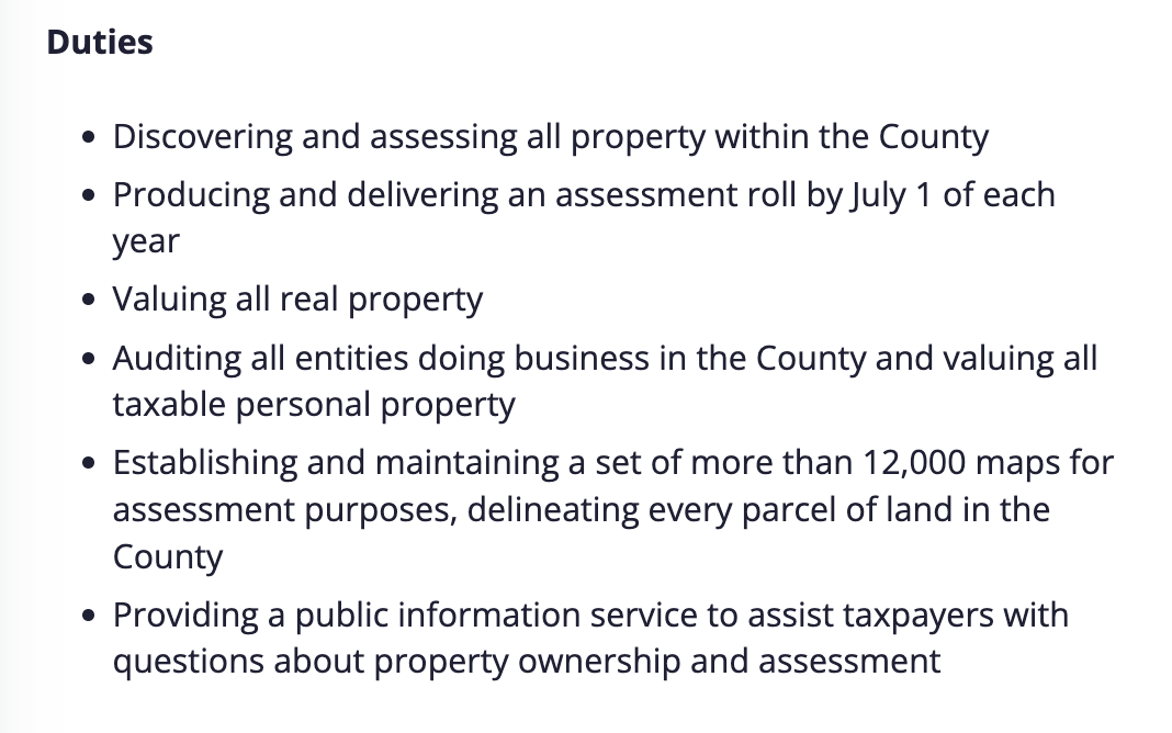 The Contra Costa County Assessor's duties include “discovering and assessing all property” and “providing a public information service to assist taxpayers with questions about property ownership and assessment.”