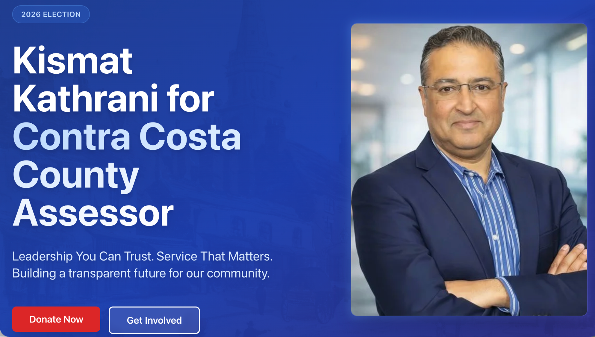 (CONTRA COSTA COUNTY, CA.) – Entrepreneur and San Ramon resident Kismat Kathrani is running for Contra Costa County Assessor.
