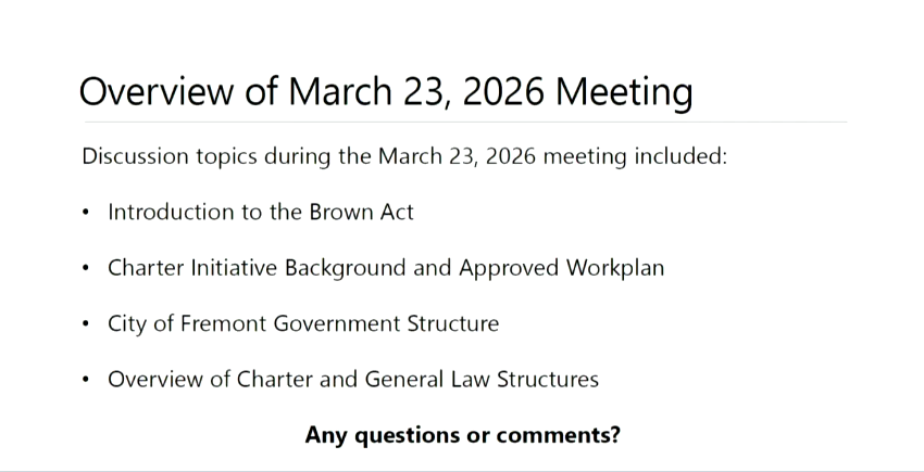 (FREMONT, CA.) – On Mar. 30, Fremont’s recently created Charter Advisory Committee meets for the second time.