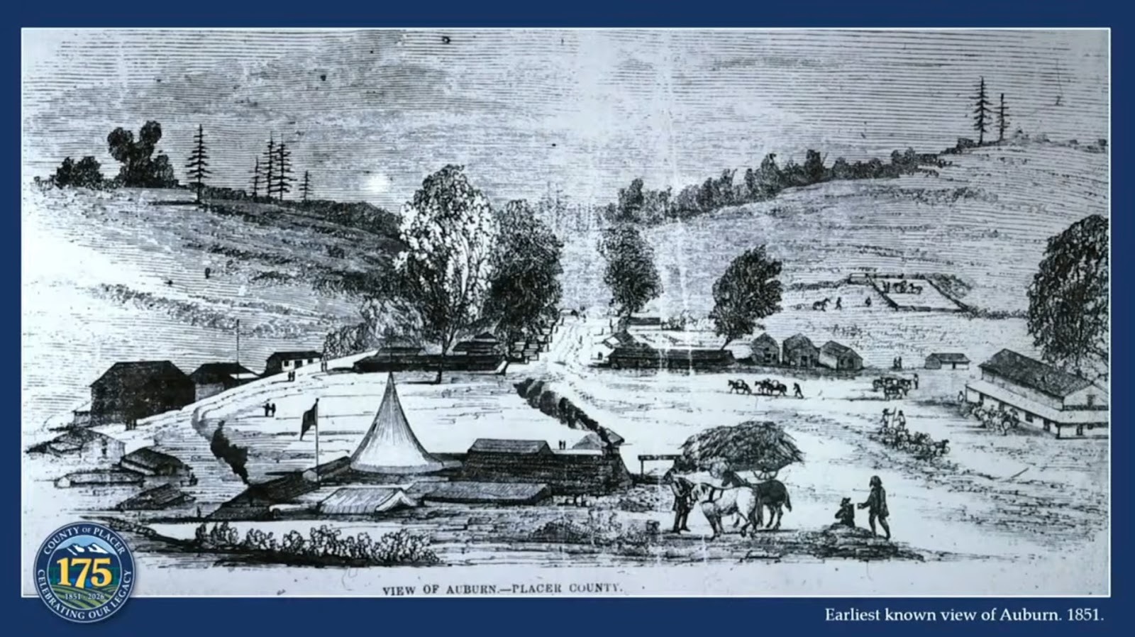 Brianna Ryan says this image from 1851 is “the earliest illustration that we have of Auburn.” Image Source: Placer County via YouTube / Robert MacMahon