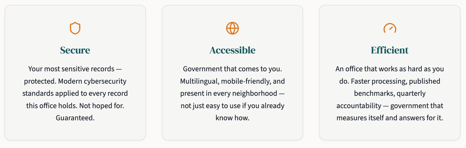 “If you can’t file a document or check a registration from your phone while waiting for a bus, I think the system is broken. I will prioritize a mobile-friendly redesign of our portal under the mobile-first program I propose.”