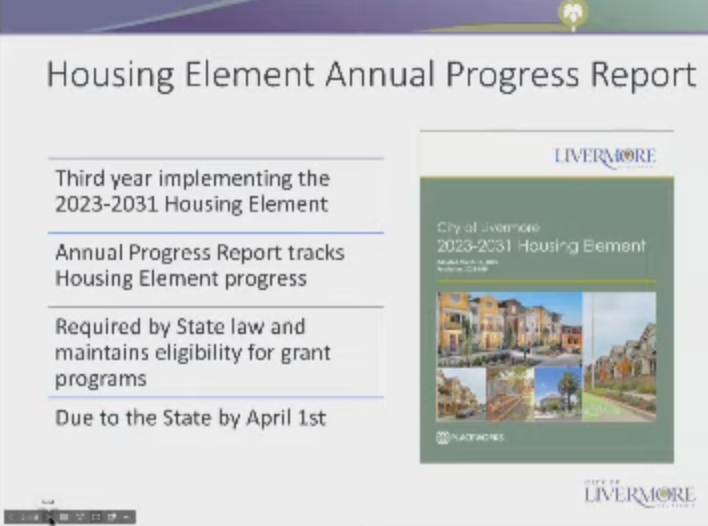 Senior Planner Shannon Pagan presents the 2025 Housing Element Annual Progress Report to the council, which is “a state-required part of the city's general plan that outlines how Livermore will accommodate the housing needs for all income levels in our community.”