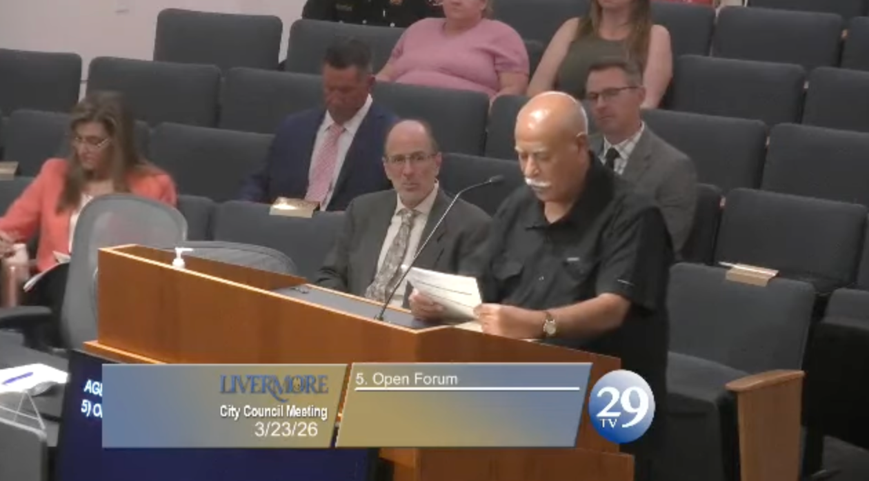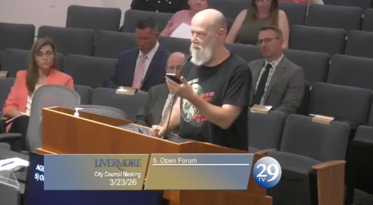 In a change of topics, Livermore resident Richard Streeter continues his comments on democracy from a previous council meeting where he ran out of time.