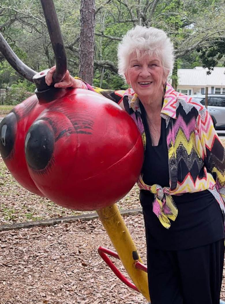 (Photo: Uptown's own Sherri Myers with iconic playground equipment at Tippin Park)