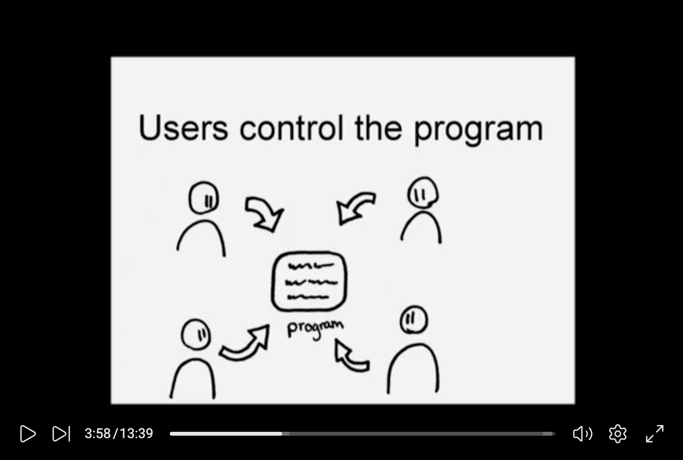 Lee explains that a good point of reference for understanding this idea is a TED Talk given by Richard Stallman, the founder of the free software movement.